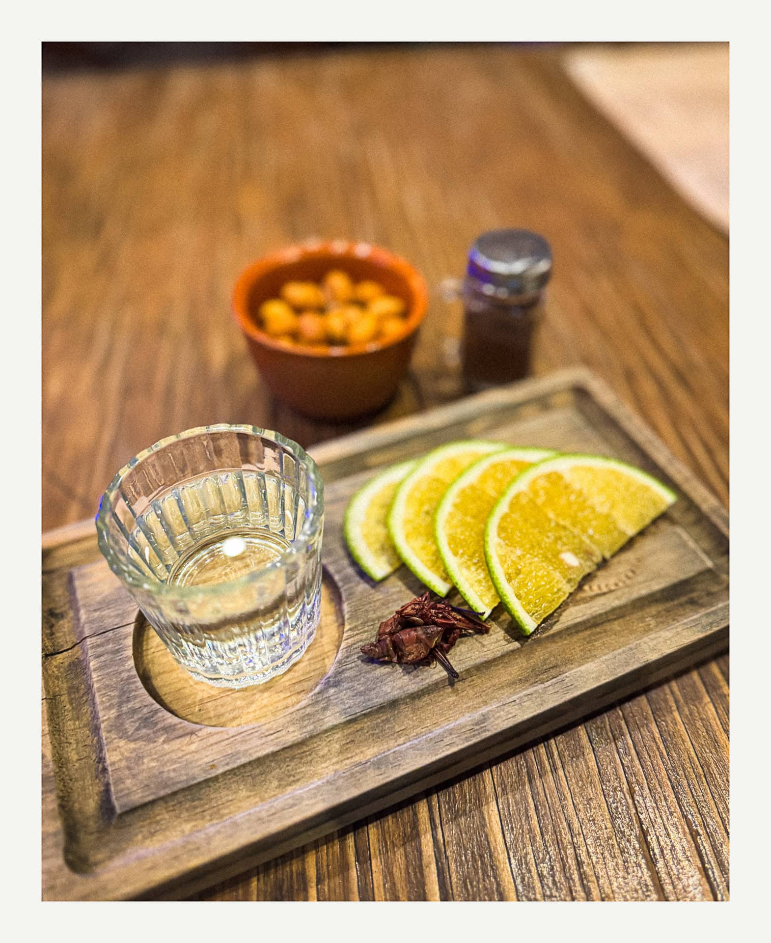 On the way back, we wandered into Bla Bla Bla Salud! for a mezcal tasting. The host, Andres, was super friendly and taught us a fun way to enjoy mezcal – with lime and insects! It was actually delicious. He even shared his ska playlist with us, which totally matched the mood. What an awesome night out in Mexico City!