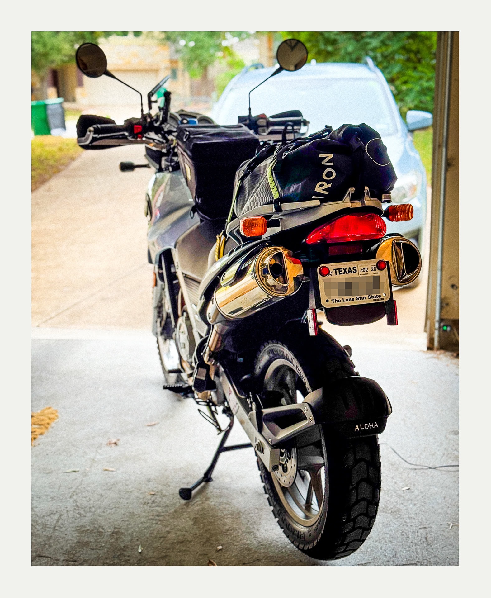 Today I set up a new waterproof bag for Kiki, and I am really happy with how it turned out. The bag is thirty liters and fits perfectly on the passenger seat and rear rack. I love my North Face Base Camp duffel, but at seventy liters it is enormous. It will be great if I ever need to haul a mountain of gear for moto camping, but for everyday riding it is way too big. For carrying my tools and a spare inner tube, this smaller bag feels just right.