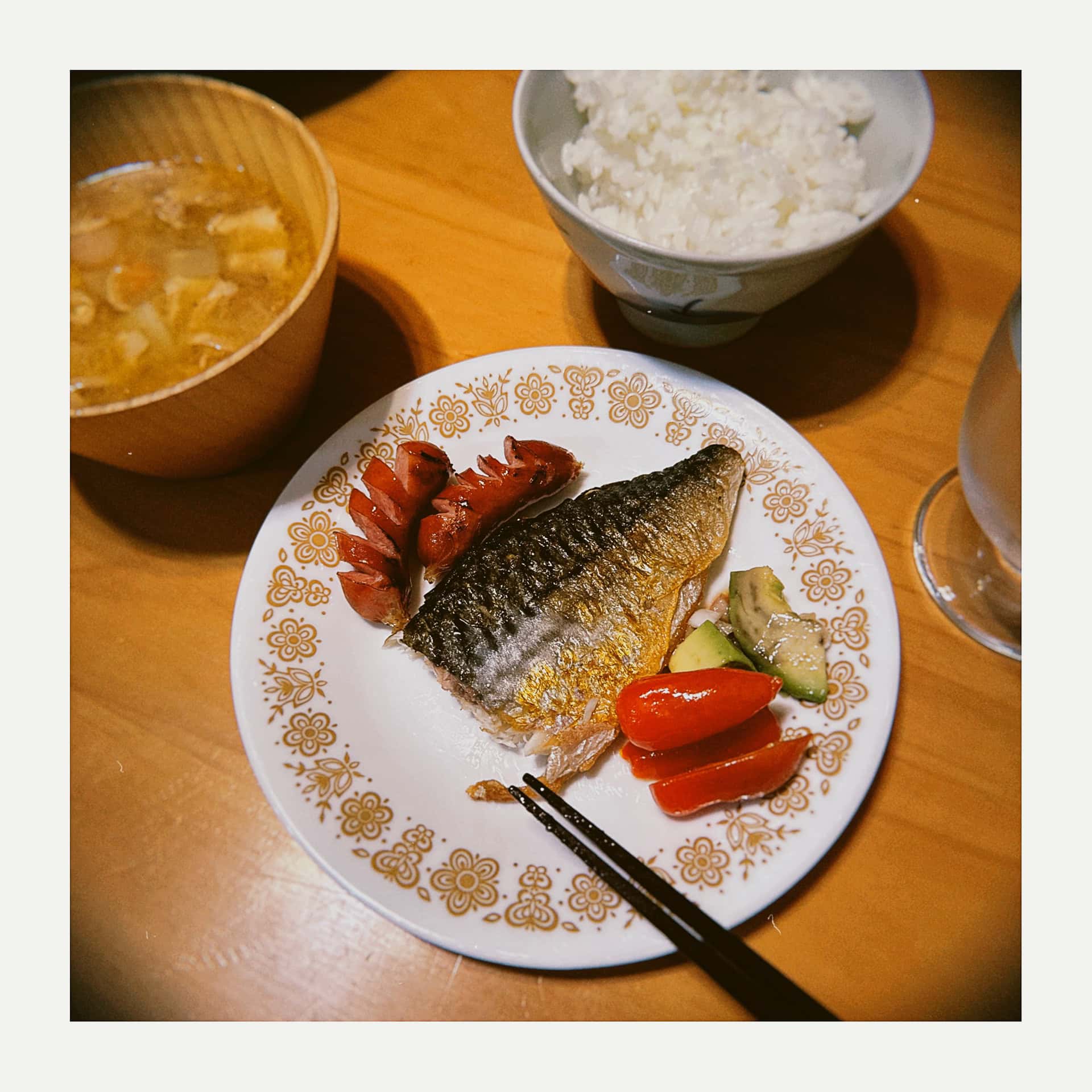 We wanted to grill some fish for dinner, but didn’t want the house smelling like it afterward, so I broke out the portable burner and grilled out back instead. The evening was surprisingly warm, which made it a really pleasant way to cook and unwind. The saba turned out great, though I should have taken the photo after flipping it so you could see that beautifully grilled skin. Oh well, it looks better in the photo below anyway.