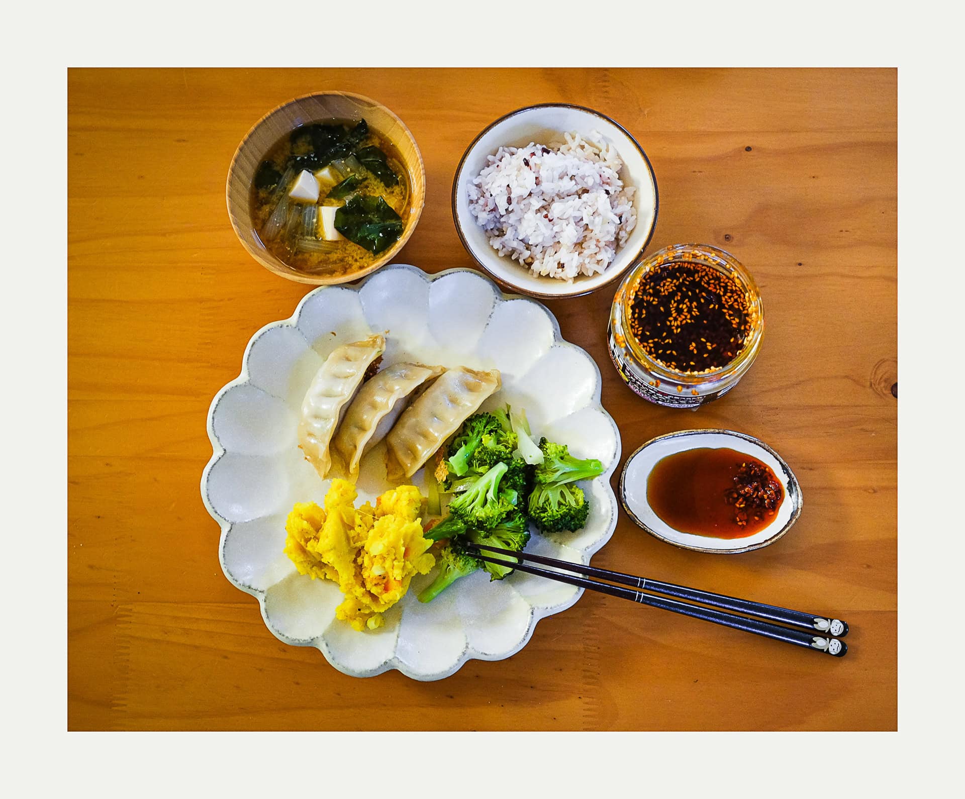 Gyoza Dinner Monday, March 30th, 2026Saturday, April 4th, 2026food, postadayFood, Slice of Life Photo info: FUJIFILM X-T10, 27mm, f/2.8, 1/125 sec, ISO800 “Gyoza Dinner” Cedar Park, 2026 Mariko made a turmeric curry potato salad to go with gyoza tonight, and it was so good. 😋 Such a colorful and delicious combo! Like this:Like Loading... Related