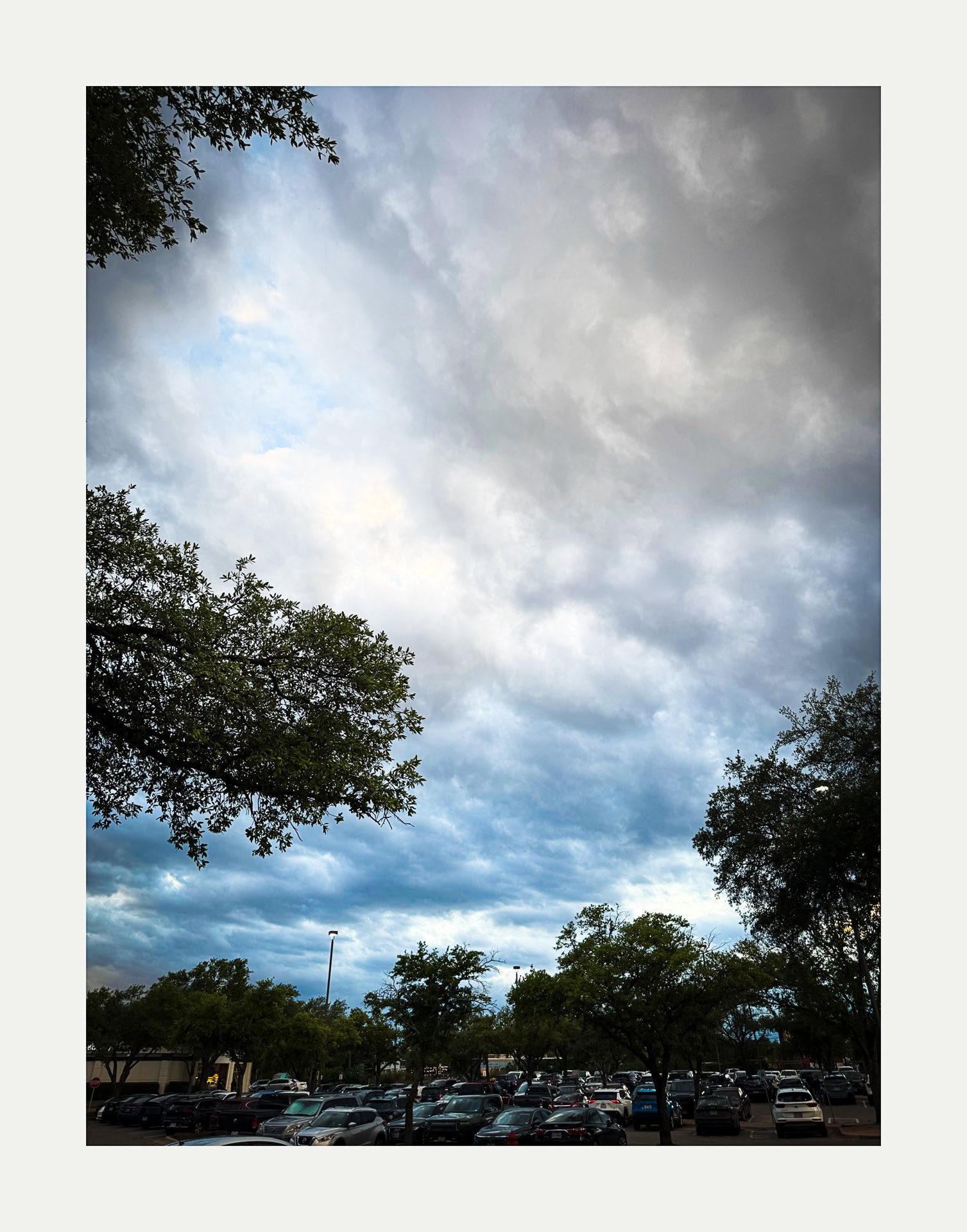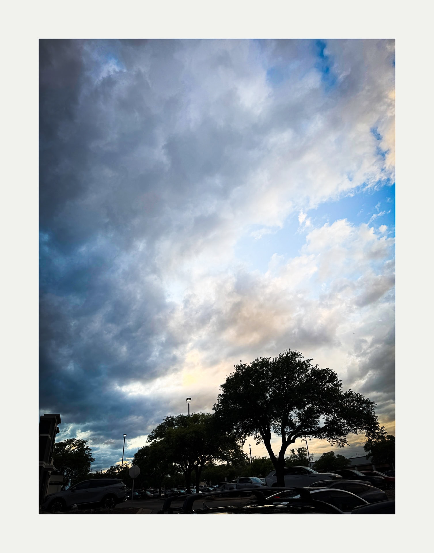 We went shopping downtown today under an overcast sky, but the sun started breaking through as the morning went on. The clouds were something else. A huge cumulus cloud dominated the sky, and then when sunset hit, everything turned all sorts of colors. It was really beautiful. I never get tired of a good cloud show. ☁️
